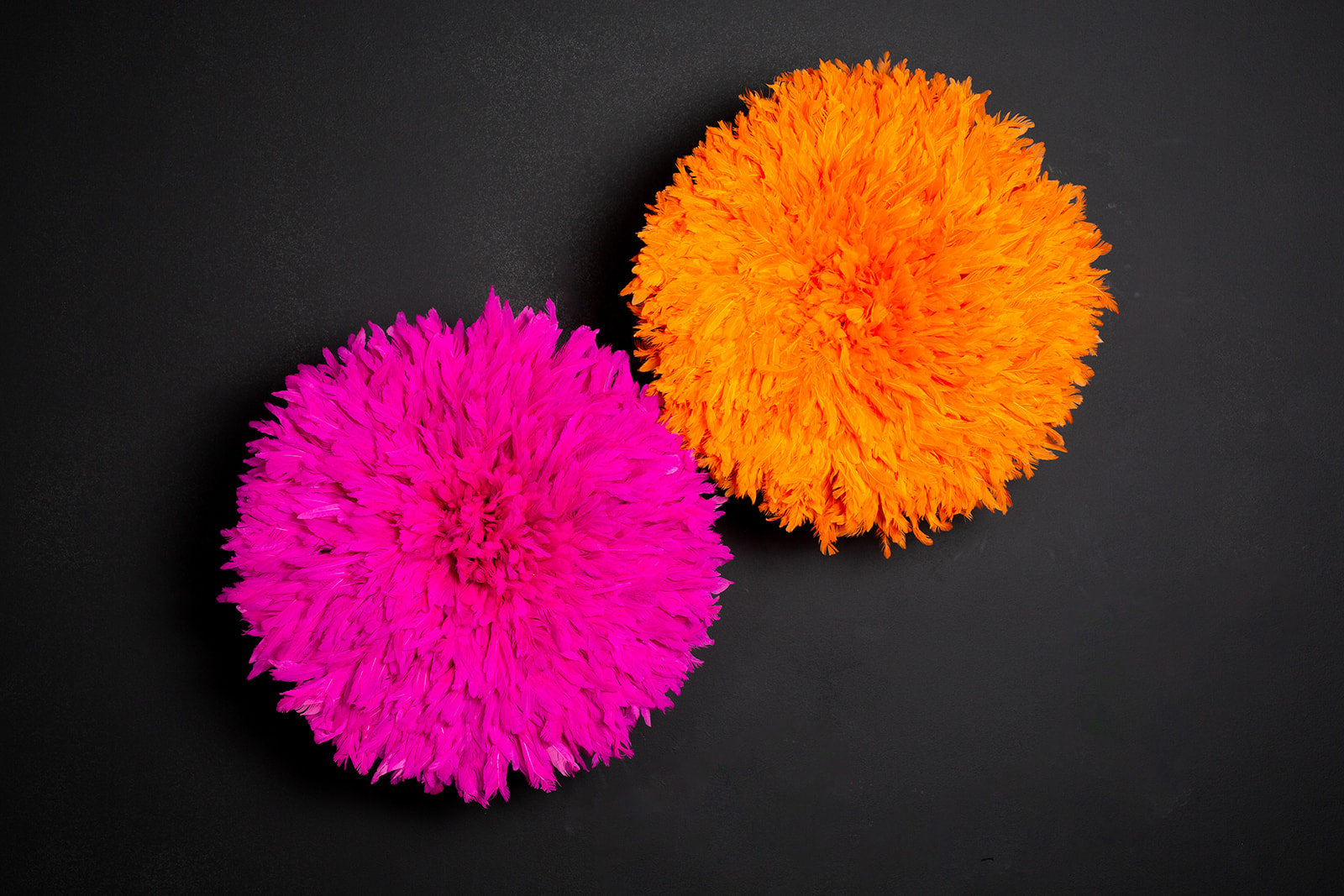 • Material: Sustainably obtained - Rooster feathers , Raffia bamboo , Material Cloths , Plastic Ropes , scissors , DYI Colors , high skilled craft men and women , Time